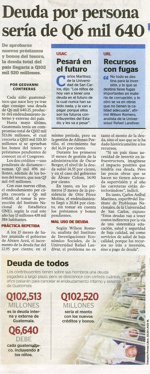 Deuda por persona sería de Q6 mil 640