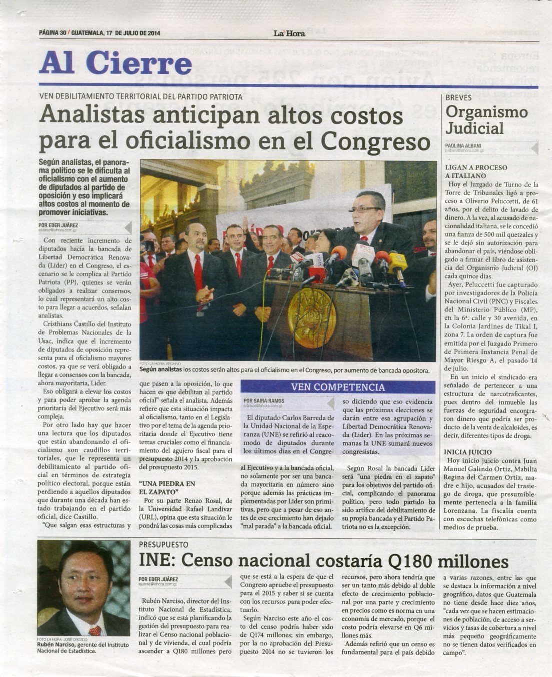 LH17072014- ANALISTAS ANTICIPAN ALTOS COSTOS PARA EL OFICIALISMO EN EL CONGRESO – PAG 30
