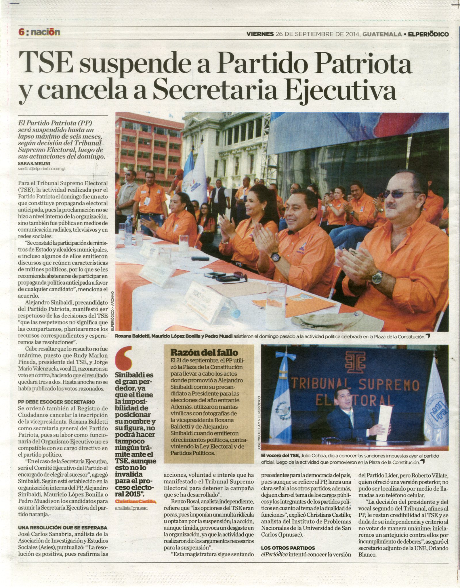 EP26092014- TSE SUSPENDE A PARTIDO PATRIOTA Y CANCELA A SECRETARIA EJECUTIVA- PAG 06