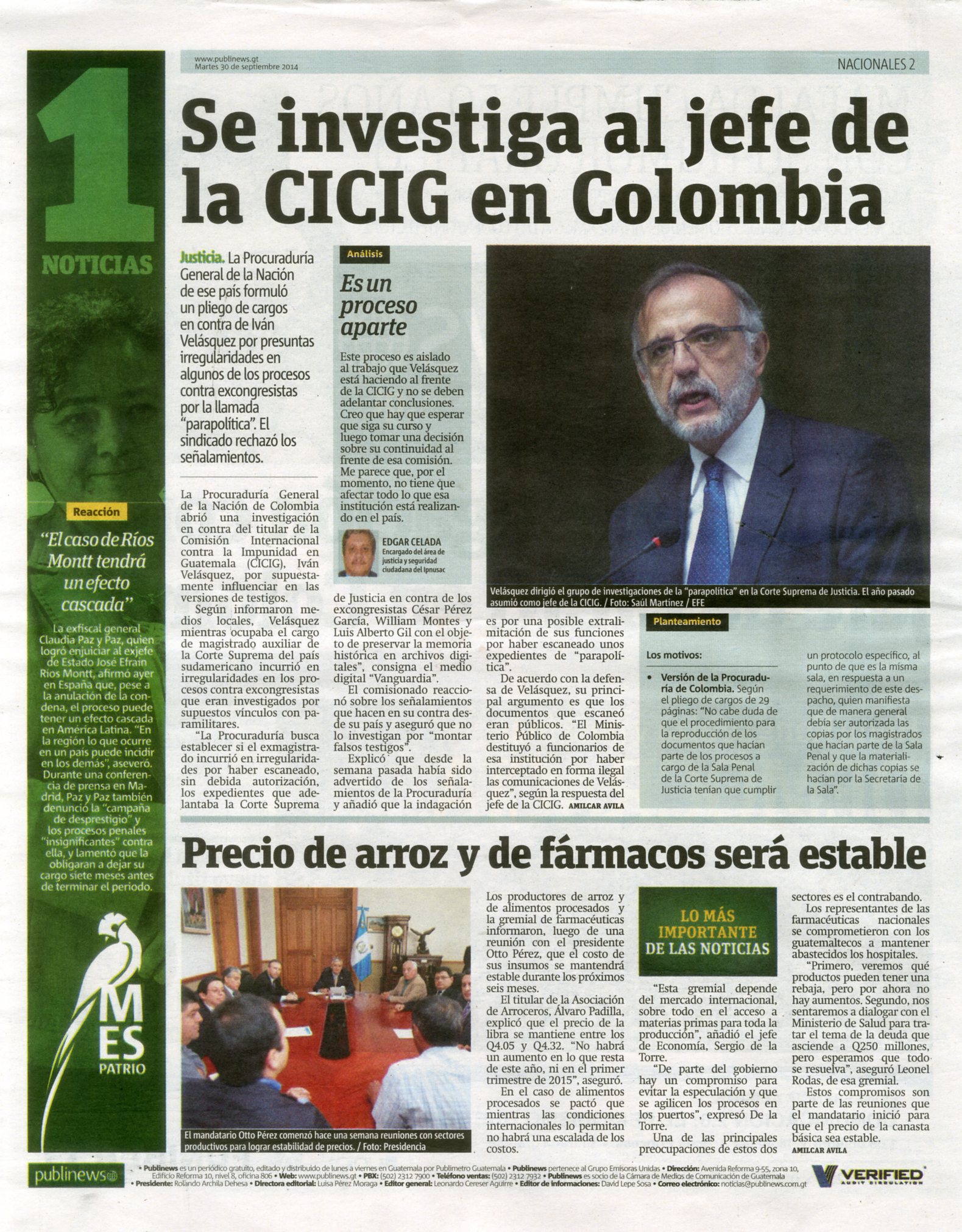 PUBLINEWS30092014- SE INVESTIGA AL JEFE DE LA CICIG EN COLOMBIA- PAG 02